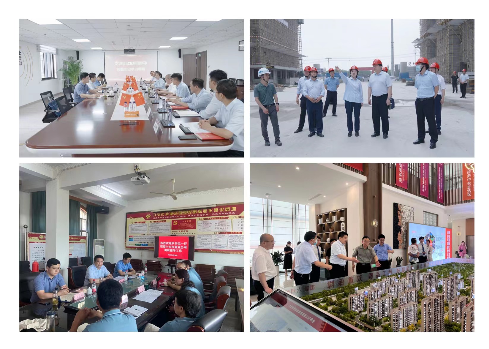 在霍邱項目公司,羅太忠實地查看了項目二期建設、產品樣板以及安全生產等情況;在六安市鹽業(yè)公司,羅太忠查看了鹽品倉庫,了解食鹽儲備任務落實情況;隨后在兩地分別召開座談會,聽取黨建和生產經營工作匯報。與領導班子、部門負責人、黨員和一線員工代表就黨建與生產經營融合,企業(yè)下一步發(fā)展思路以及需要集團公司協(xié)調解決的問題進行深入交流。