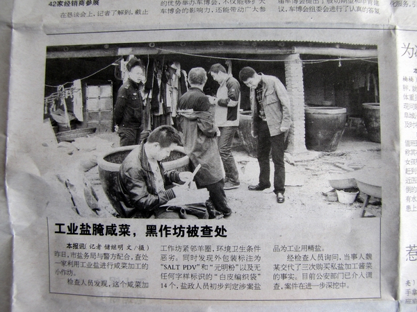 本報訊(記者 儲繼明 文/攝)昨日,市鹽務局與警方配合,查處一家利用工業(yè)鹽進行咸菜加工的小作坊。