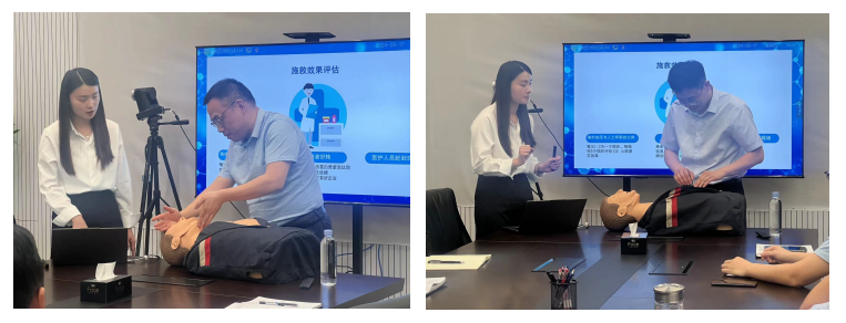 講座中,主講老師詳細解析了心腦血管的發(fā)病原因、發(fā)病癥狀、表現(xiàn)特點及防控知識,強調(diào)良好的生活習(xí)慣、適度的體育鍛煉、定期體檢等對控制和預(yù)防心腦血管疾病十分有效。同時,主講老師為大家詳細講解并演示了心肺復(fù)蘇術(shù)(CPR),邀請在場職工實際操作。